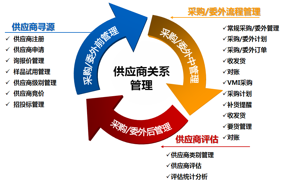 供應(yīng)商管理系統(tǒng)包含供應(yīng)商管理模塊、供應(yīng)商門戶兩個模塊。供應(yīng)商管理主要用于管理供應(yīng)商全生命周期。供應(yīng)商門戶主要用于企業(yè)與供應(yīng)商進(jìn)行業(yè)務(wù)協(xié)同和信息溝通。
