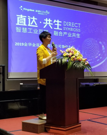 首先由金華金辰軟件有限公司副總經(jīng)理 倪小紅女士致辭,倪總回顧了金蝶的發(fā)展之路,并展望了未來的全新趨勢,表達(dá)了對(duì)到場所有客戶的感謝之情,也對(duì)金華金辰的發(fā)展指明了方向。
