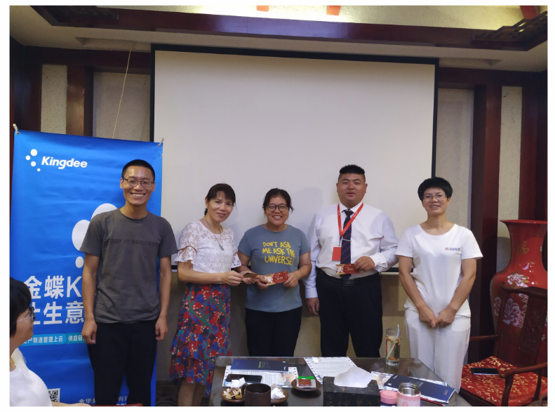 在熱烈討論結(jié)束后,安排了抽獎環(huán)節(jié)。由霍偉偉先生抽出三個三等獎,并與幸運客戶合照留念。感謝客戶一直以來對我公司的支持,對金蝶產(chǎn)品的信賴。