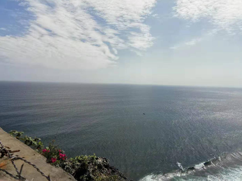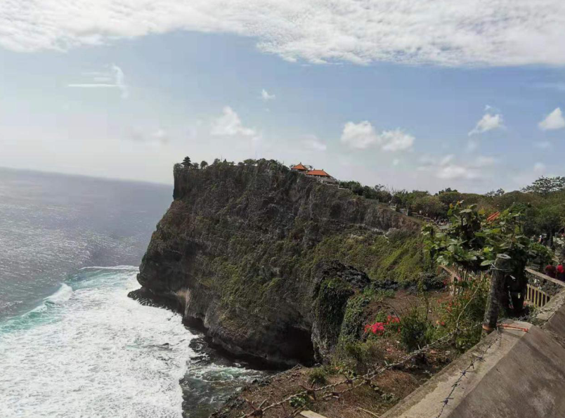 午餐后,去了烏魯瓦圖斷崖(情人崖)。這里海浪拍打著懸崖,海鳥在空中翱翔,景色非常迷人。與海神廟岸邊公園相似,情人崖上也遍布各種帶有宗教色彩和巴厘島特色的石雕,這些雕塑造型圓潤,線條卻無比繁復(fù),足可見出工匠的巧手妙思。更有熱帶風(fēng)情的是,不少神像的耳邊還插著一朵當(dāng)?shù)刈疃嘁姷哪厅S色雞蛋花,巴厘人的細(xì)膩多情可見一斑。在情人崖有許多猴子,特別猖獗,會(huì)搶東西,除非用吃的或錢引誘,要不沒法取回。
