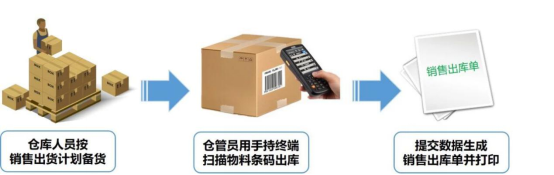 銷售人員開具發(fā)貨通知單掛至感應門處,叉車人員根據(jù)指引找到貨物,操作叉車經(jīng)過倉庫出貨門,感應設備自動感應產(chǎn)品信息、產(chǎn)品數(shù)量、校驗是否和發(fā)貨通知單一致等。自動判定是直接發(fā)貨業(yè)務還是調撥業(yè)務,提交后自動生成系統(tǒng)銷售出庫單。