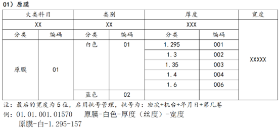 ? 薄膜行業(yè)物料編碼整理