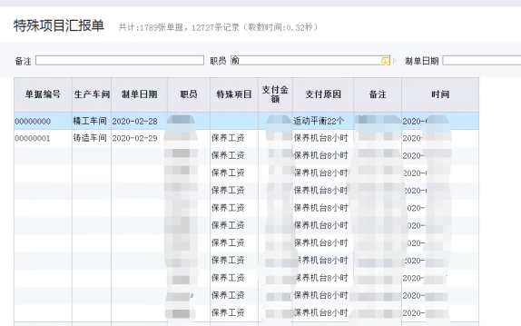 除車間的工序匯報(bào)以外,針對(duì)辦公室或其他獎(jiǎng)勵(lì)等機(jī)制的工資錄入,通過特殊項(xiàng)目匯報(bào)單進(jìn)行工資匯報(bào),單據(jù)中的項(xiàng)目可自定義,及時(shí)形成對(duì)應(yīng)的工資表。
